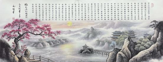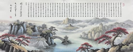 首创“书画结合”技法,作品《岳阳楼记》《桃花源记》《醉翁亭记》《兰亭序》以书法笔墨诠释绘画意境 ,被卢浮宫收藏。