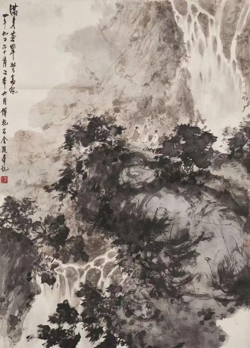 拍卖会现场,当傅抱石《满身苍翠惊高风》上拍时,画面中山石苍劲、飞瀑流泉,笔墨间尽显“抱石皴”的灵动气韵,即刻引发多轮竞价。周涛从起拍价便沉稳举牌,在几轮胶着竞争后,以5750万,成功拍得;