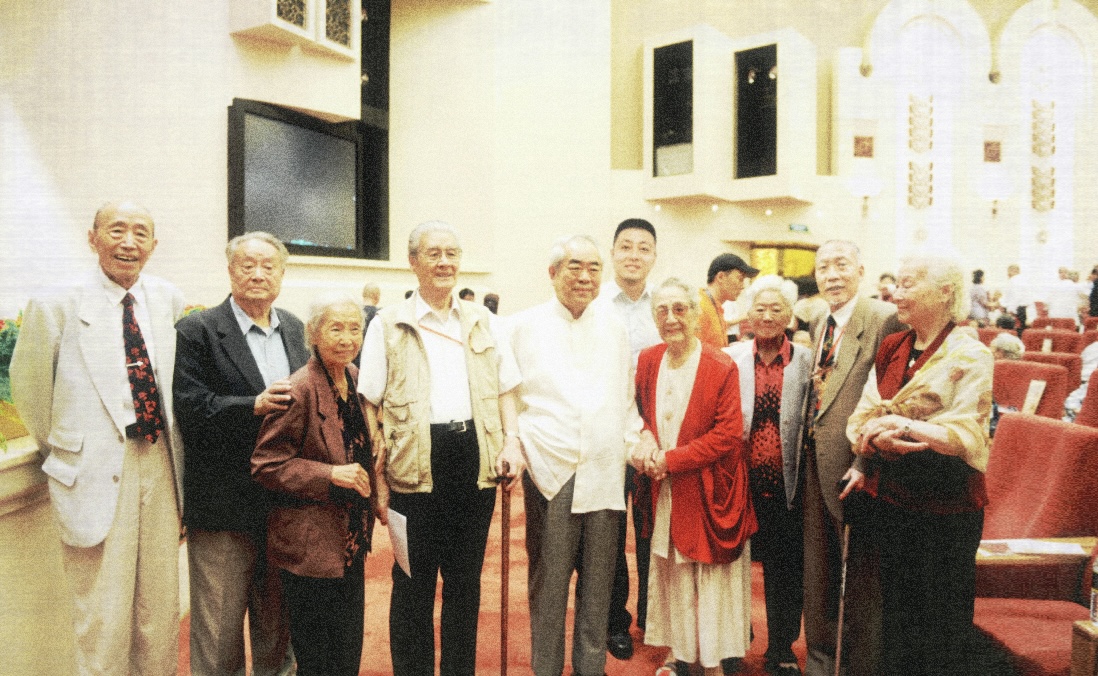周涛与父亲周国桢(左四)范曾(左五)石静(右2)合影