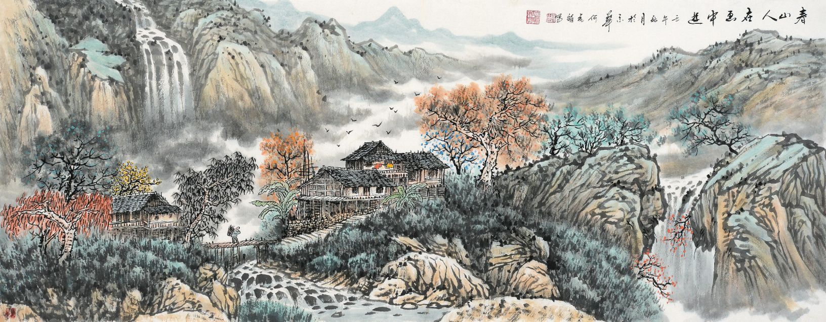 1997年何虎雏为庆祝香港回归创作巨幅山水《归来》作品被(前主席)江泽民收藏。