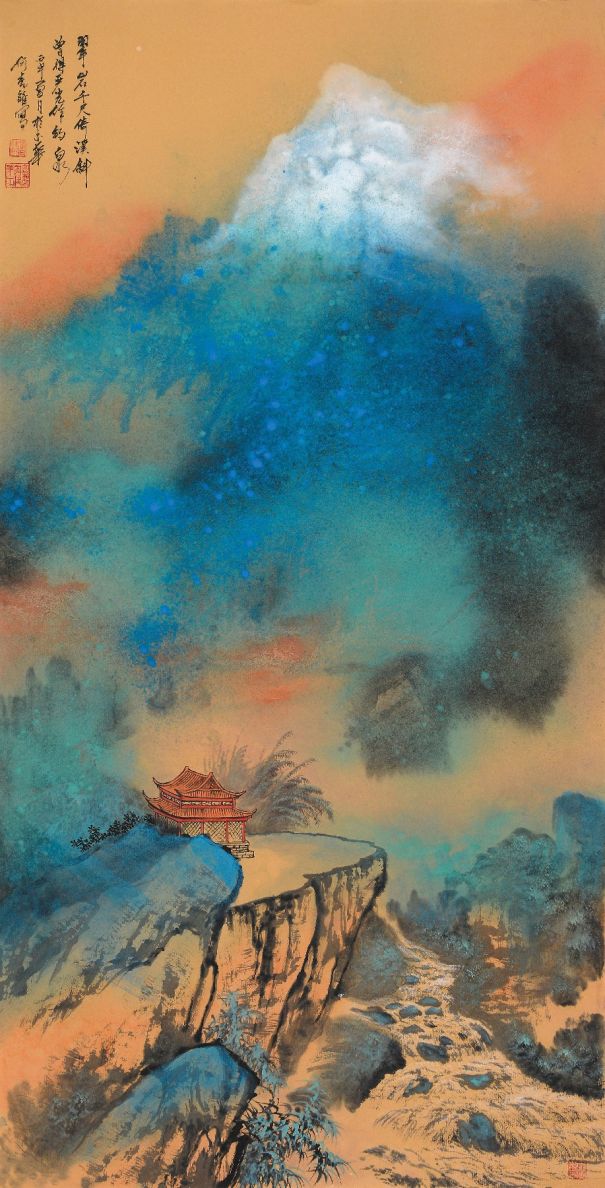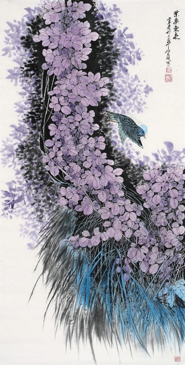 何虎雏, 1950年2月出生。北京人。国画巨匠何海霞之子,长安画派继承人,何虎雏继承了张大千及和何海霞泼彩山水技法唯一传承人,中国画研究院研究员,北京何海霞美术馆馆长,新泼彩水墨之父,书画世家,秉承家学从小习画,母亲王学敏是张大千的学生;自幼跟随父亲何海霞学习书画技法。何虎雏擅长山水画,花卉,他的作品在其父亲何海霞教导的下,既有长安画派的身影,又有自己独特的一面,在水墨,青绿,工笔,泼彩,界画领域均有所造诣,创作了很多优秀作品,其作品个性鲜明,富有灵魂的生命力,绘画行云流水,笔墨浓淡分明。
