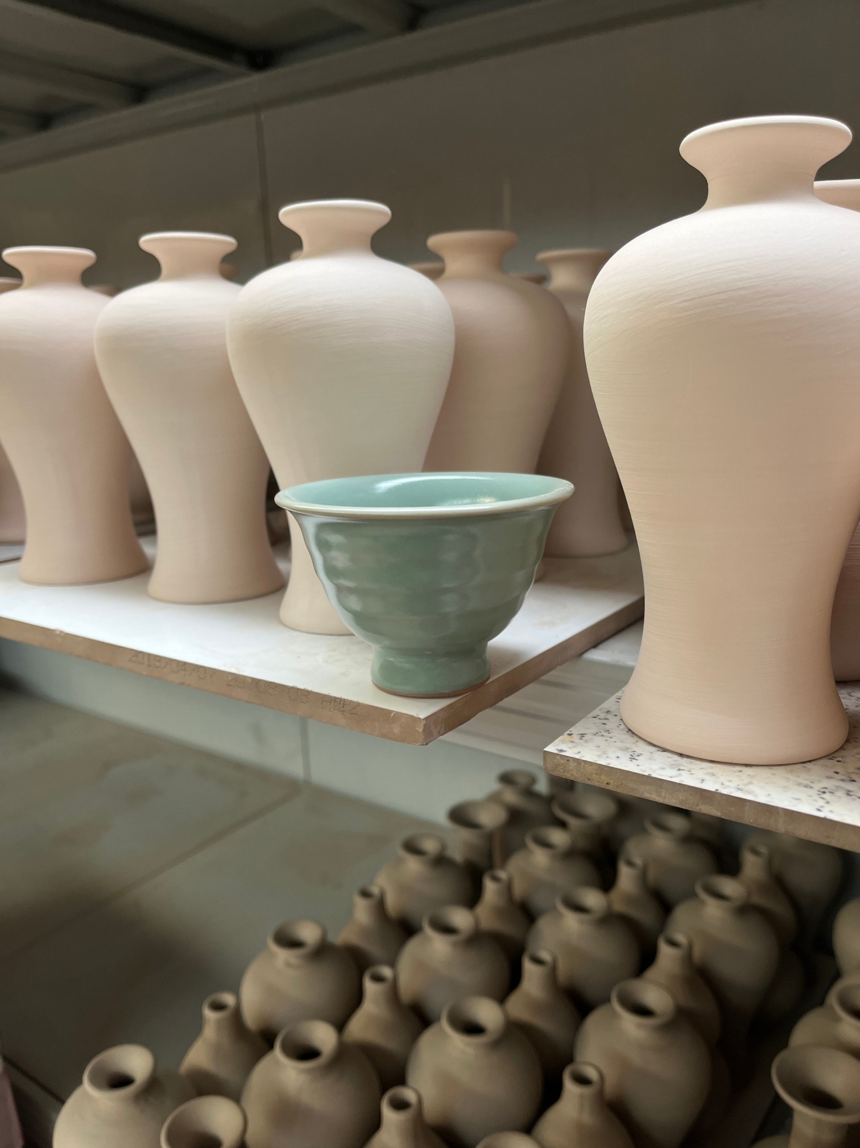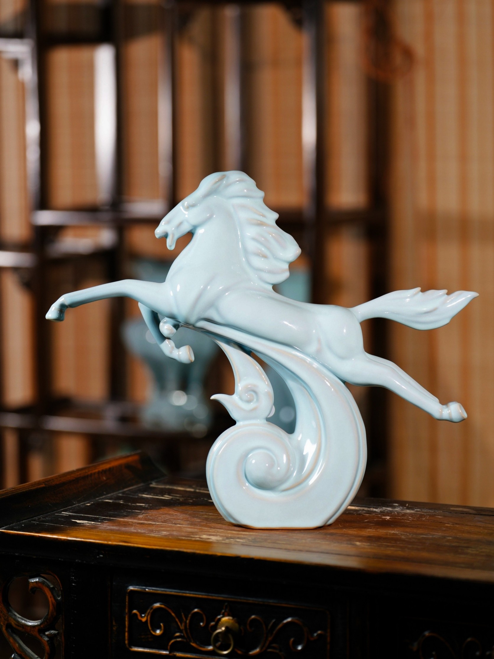 在传承古法的基础上,李武涛坚守汝瓷 “青如天、面如玉、支钉烧、声如磬” 的经典特质,从选料、练泥、制坯到施釉、烧制,每一道工序精益求精,以匠心还原汝瓷千年神韵。他注重传统与当代审美融合,在器型设计、釉色把控与纹饰创作上不断突破,形成典雅大气、温润内敛的艺术风格。