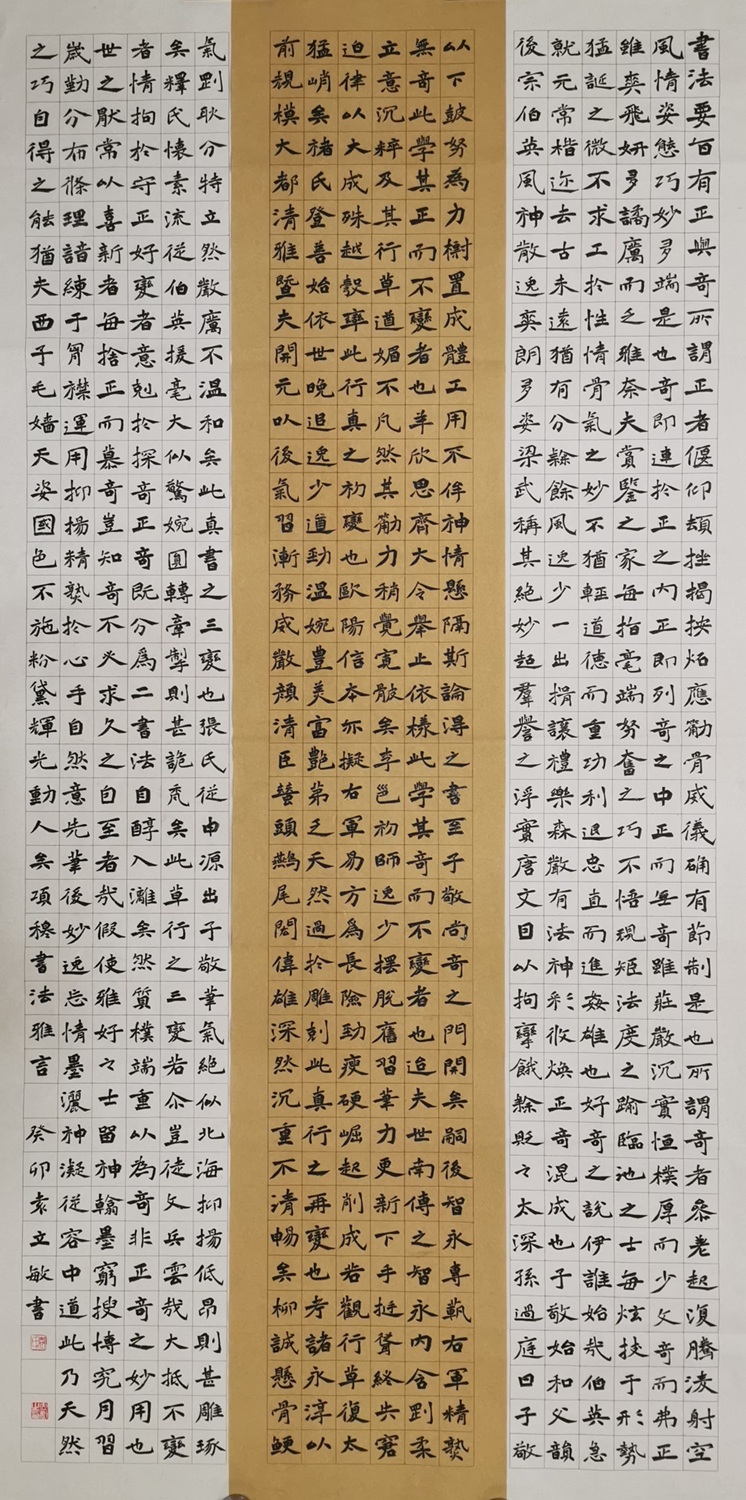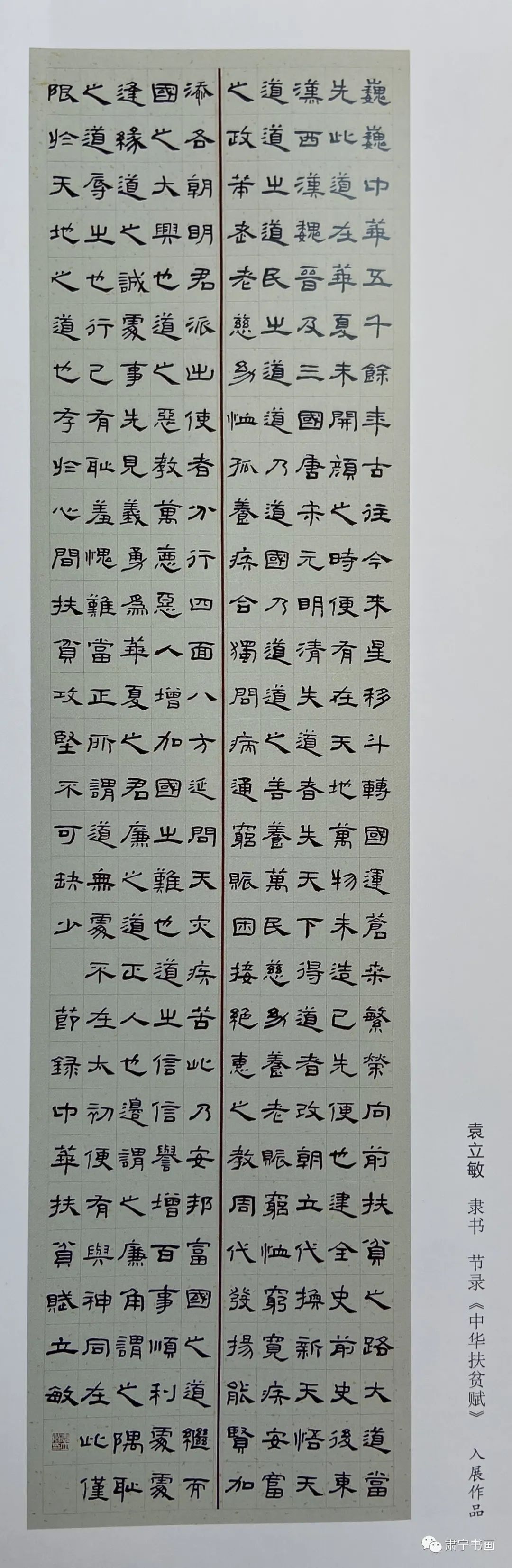 袁立敏,号:心圆斋主,河北肃宁县人,现任肃宁县中医骨伤医院院长助理、主管护师,河北省书法家协会会员,河北省女书法家协会会员,沧州市书法家协会会员,沧海印社社员,沧州市女书协会员,肃宁县书法家协会副秘书长,美术家协会理事,肃宁县女书协理事,武垣印社社员,肃宁县大墨堂书画院院士兼秘书长,充分利用空闲时间投身书法公益教学与志愿服务,其多幅作品参展国展和省市展并获奖,致力于当地书法文化的普及与传承。自2016年起加入肃宁县成人公益书法班教学团队,随班持续授课,因人施教、开展个性辅导,累计培训学员超千人次。