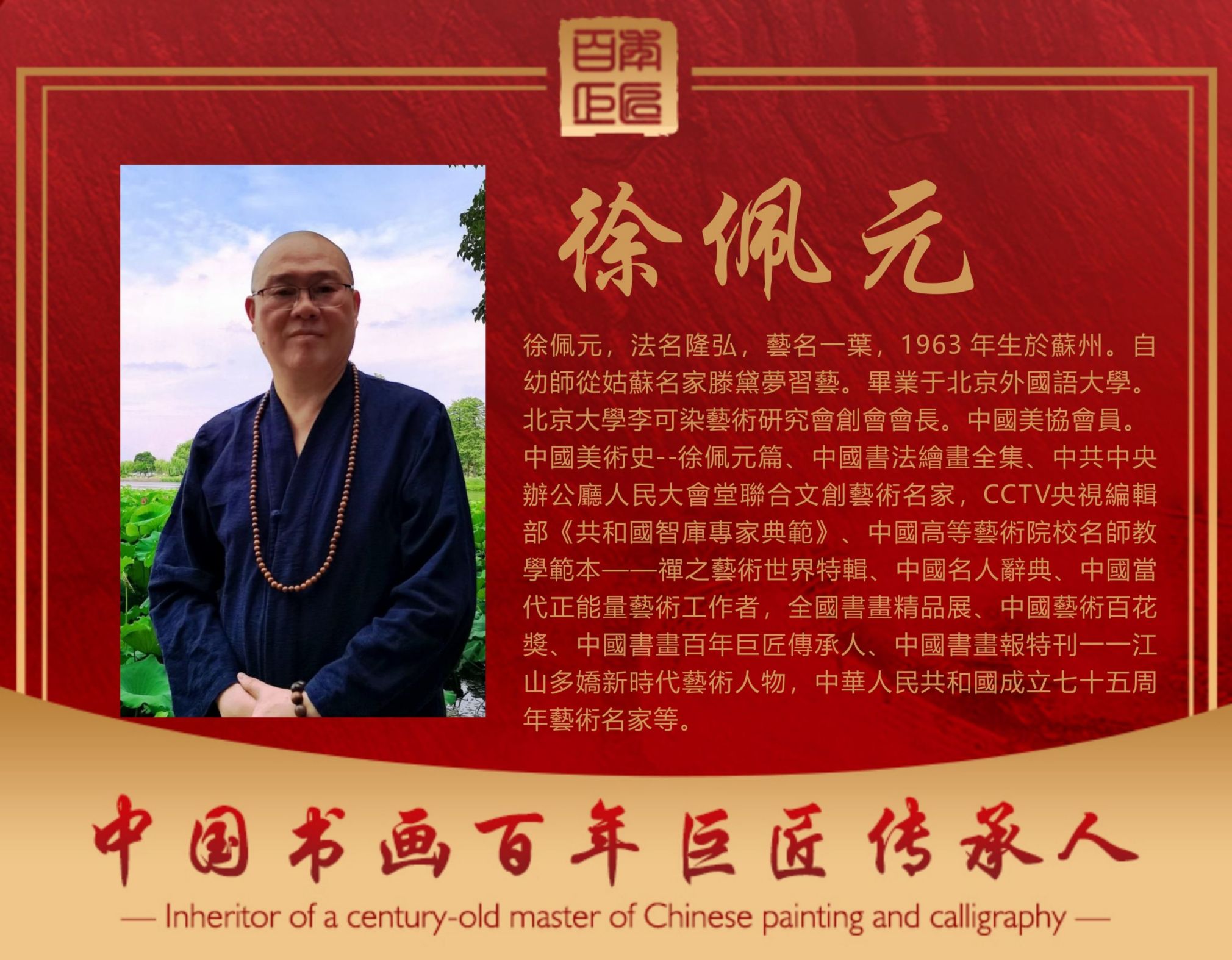 徐佩元,法名隆弘,藝名一葉,1963 年生於蘇州。自幼師從姑蘇名家滕黛夢習藝。畢業于北京外國語大學。北京大學李可染藝術研究會創會會長。中國美協會員。
