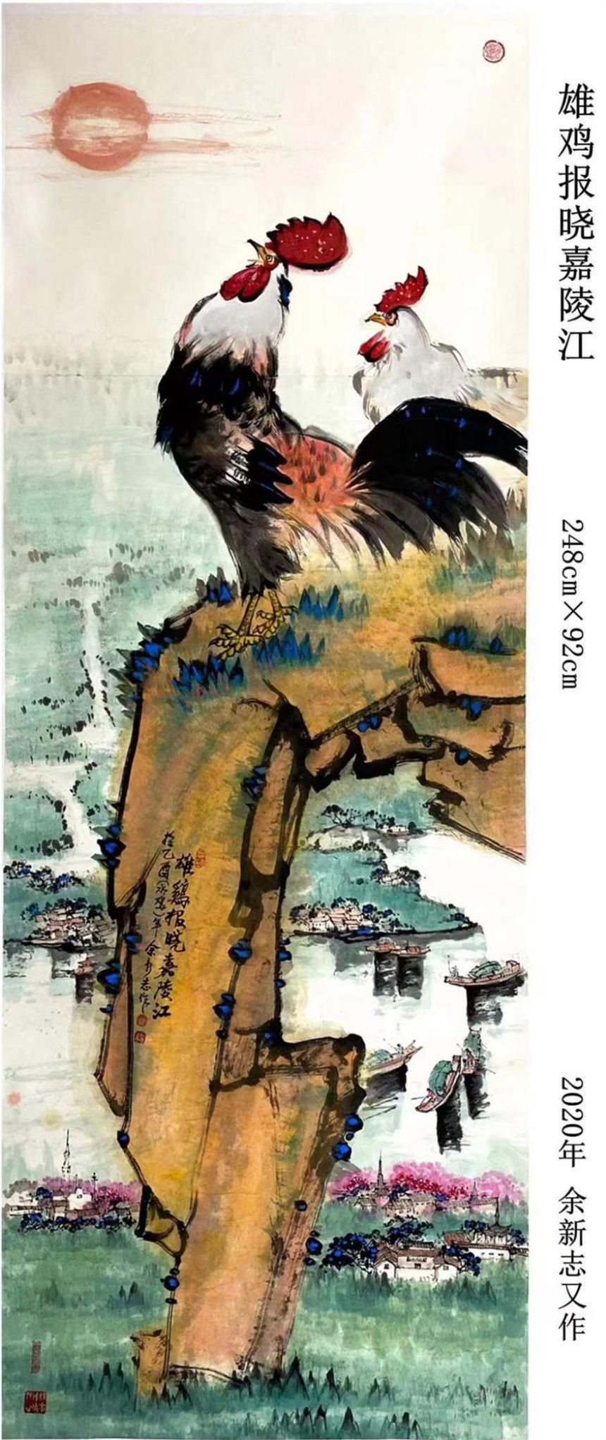 1989 年就在中国美术馆成功举办个人书画展,声震画坛,享誉海内外。2007 年应邀参加外蒙古国“纪念成吉思汗成立 800周年”大型活动,被授予“成吉思汗”荣誉勋章;2010 年被世界华人华侨总会评为“世界华人精英优秀人物”和“世界华人杰出艺术家”;2011 年被国家授予“共和国杰出书画家”勋章;2014年被授予“全国‘五·一’劳模”勋章;2015 年被评为“非物质文化遗产传承人物”,授予“一代宗师”荣誉称号。2017 年在美国洛杉矶举办画展,受邀走进联合国会议大厅参加高峰论坛会,受到布鲁斯·罗茨主席的亲切接并合影留念。2021 年余新志先生与张大千、林散之、李苦禅、林凤眠、启功、李可染、欧阳中石、黄永玉、沈鹏等顶尖级艺术家被评为“艺术百年·新中国十大巅峰艺术家”。2024年授予中国四大国粹传承人。