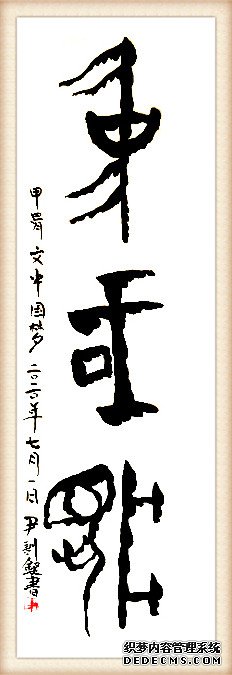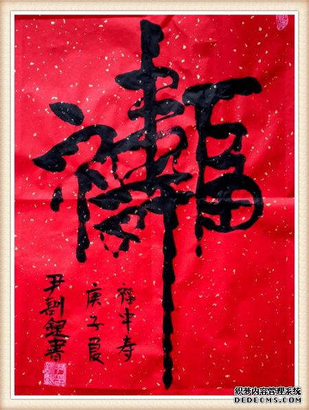 被中国书画界称赞的十件书法作品:《吉祥安康》、《福如北海水长流 寿似南山松不老》、《牡丹》、《放下自在》、《不容易》、《上善若水 厚德载物》、《福》、《佛》、《平安是福》、和《武警之家》。其书法作品分类:作品、社会捐赠品、教学专用品、获奖品、拍卖品、收藏品、专利品、版权品和世界非物质文化遗产等。