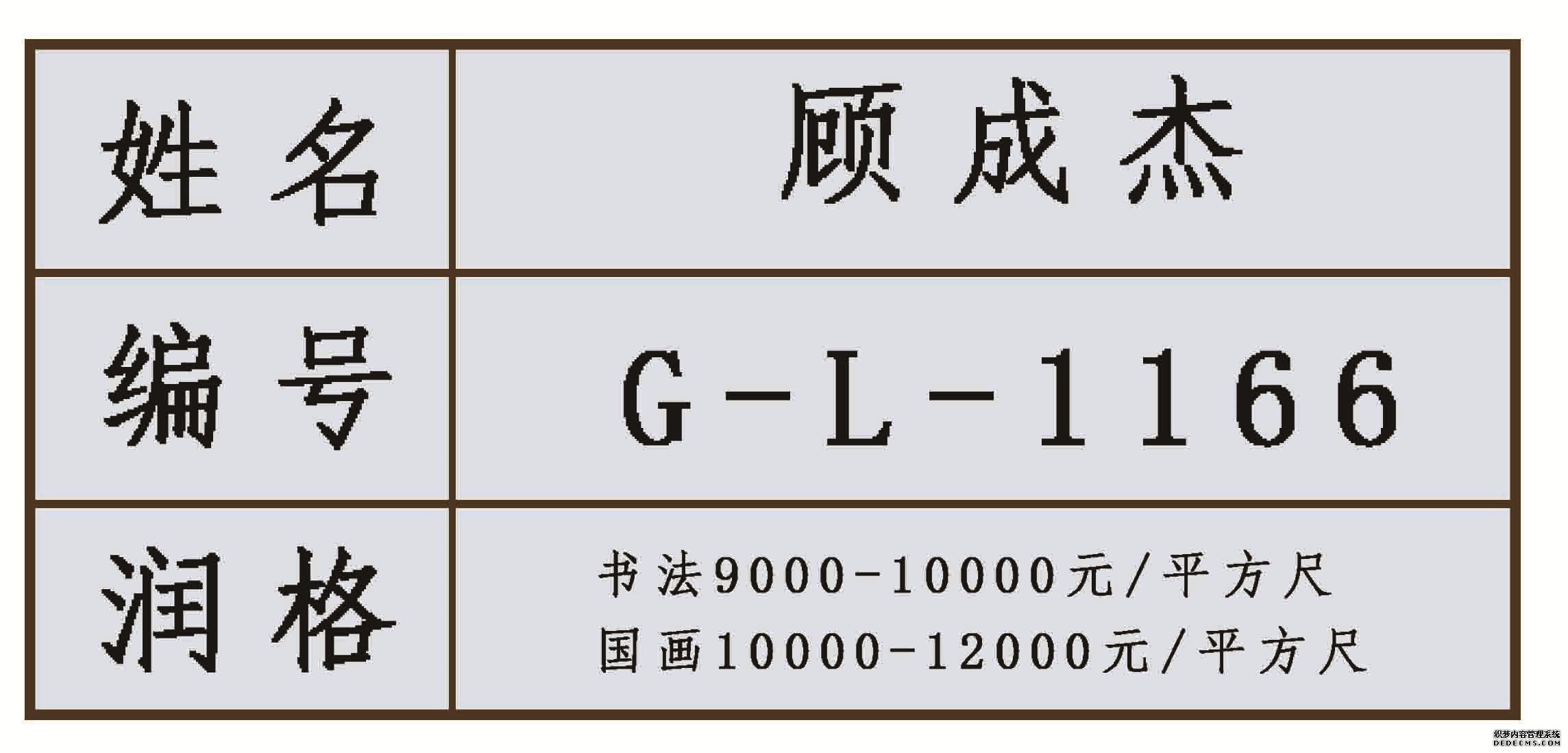 顾成杰(笔名:古木)号八公山人,石香斋主人,汉族,1956年出生,皖.寿县人,大学文化,中共党员。江淮大写意画派传承人、重要画家之一,现为安徽国艺书画院副院长兼秘书长,萧龙士艺术研究会副秘书长,安徽省松风竹雨艺术研究会秘书长,国立书画院副院长,安徽省老年书画研究会常务副会长,安徽祥舜文化艺术投资有限公司签约书画家,合肥晚报书画院特聘画家,安徽省美术家协会会员,安徽新昊诗书画院常务副院长,合肥市五月风书画院创作员,中国画家协会理事,安徽电视台艺术人物栏目顾问等。