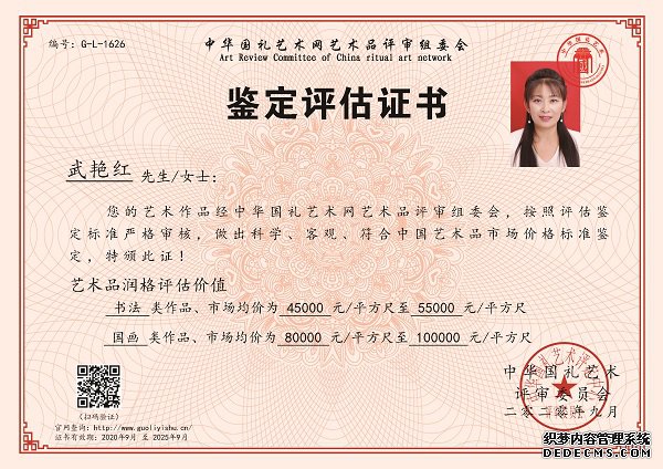 十几年来,武艳红一直刻苦在艺术道路上不停的耕耘,各书画机构。曾多次颁发了入展和获奖荣誉证书,同时得到了专业艺术家们的高度点评和鼓励,诸多作品受国内外多名收藏家收藏,当今,武艳红还在依然不断的学习和创新,并严格要求自己,目标以更好的作品来回报社会的标准而努力提高艺术水平!