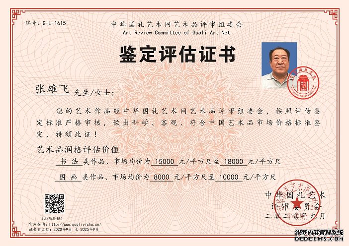 张雄飞,1954年生,河北人。曾在中国人民解放军87494部队,沈阳飞行总队任政委。自幼酷爱书法,一直以来临池不辍,张老师的作品一笔而下,观之若脱缰骏马腾空而来绝尘而去;又如蛟龙飞天流转腾挪,来自空无,又归于虚旷,这近乎癫狂的原始生命力的冲动中包孕了天地乾坤的灵气,行云流水,落笔如云烟。作品经常在各个拍卖会场拍卖,受到国内外友人的喜爱并收藏。张老师的作品是最具投资价值的艺术品。