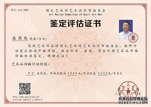 甲骨文书法作品《五福临门》在“2019首届黄河书画奖章”网络大赛获得优秀奖。其中为国际同心会世界总会设计的《星云际会图》大作被永久珍藏、并颁发国际同心会世界总会成立四十四年来首张收藏证书,并开具此{一级公示证明}以表崇敬;诗作《谒黄帝陵》荣获中国散文网2017年“第四届中外诗歌散文邀请赛”一等奖;诗作《汨江恨》荣获中国散文网2018年第五届“相约北京”全国文学艺术大赛一等奖。