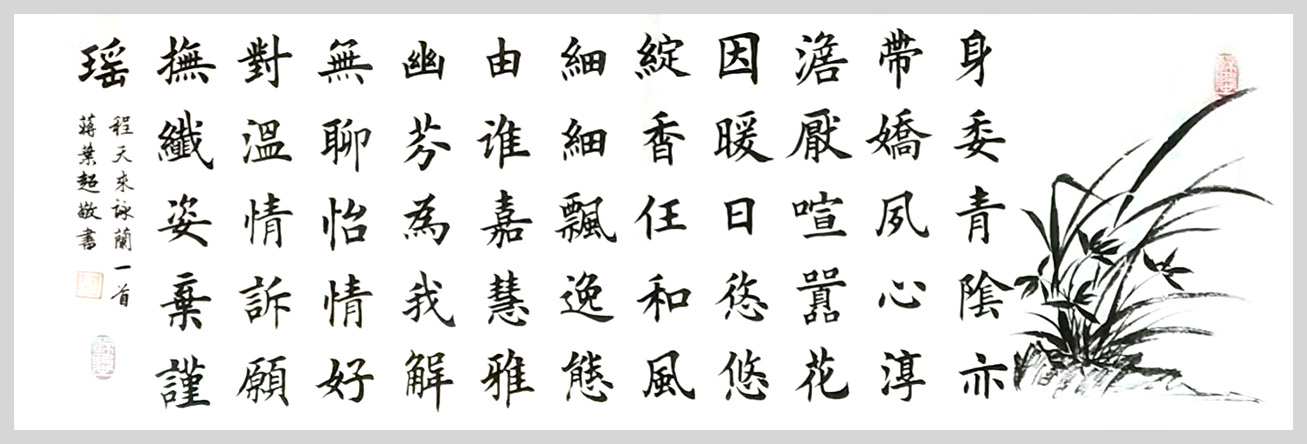 尽管如此,蒋叶超先生正在有经验的老师指导下,扎扎实实地练习书法基本功,临摹古代优秀碑帖,坚持不受现代派五花八门的书风影响,着重提高自已的书画理论、文化、道德情操修养,积累生活阅历,从大自然中去领悟书画艺术的奥妙。学以致用,争取把临摹与创作结合起来,把书法艺术和日常书写结合起来,加强作品的艺术效果,让更多的书画艺术爱好者领略到传统文化的无穷魅力。