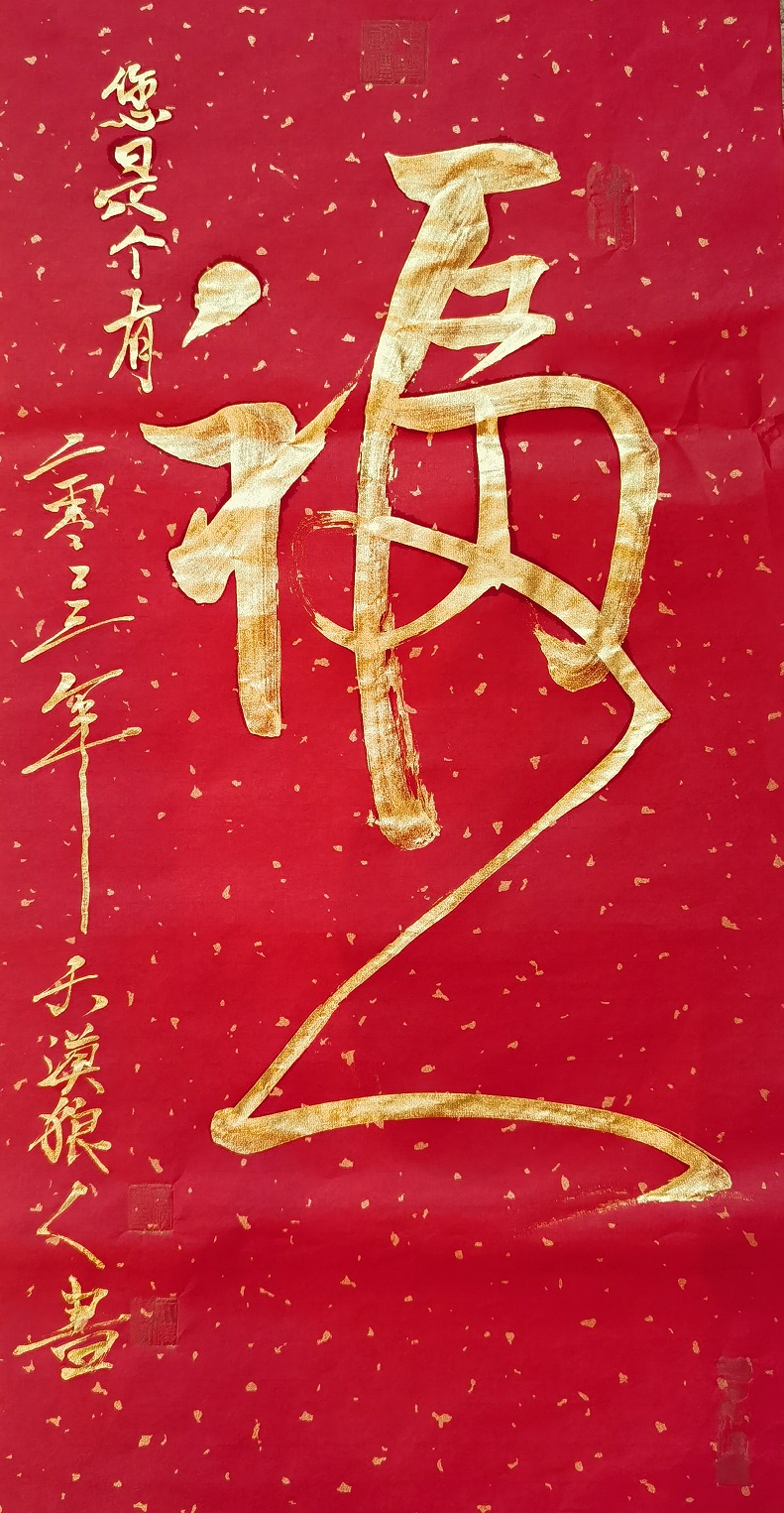2021年1月百花迎春全国书画大赛中,作品《福寿财忍善》荣获大赛金奖。