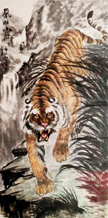 艺术作品呈现给我们的一切形式或画面都有一定的意蕴。当然,虎在中国传统绘画中的表现意义深远。虎是百兽之王,是威严、权势、荣耀的象征,是吉祥、祥和的吉祥兽,是势不可挡、不可战胜的力量,是权力、热情、无畏的象征。雪山,月夜,松山,必有强风起,一路顺风,战无不胜,勇往直前,自尊心强。事实上,中国传统绘画中有很多关于老虎的寓意,人们也把老虎放在非常神圣的位置。虽然有不同的看法,但老虎在人们中间总是一个比较公正的身份。