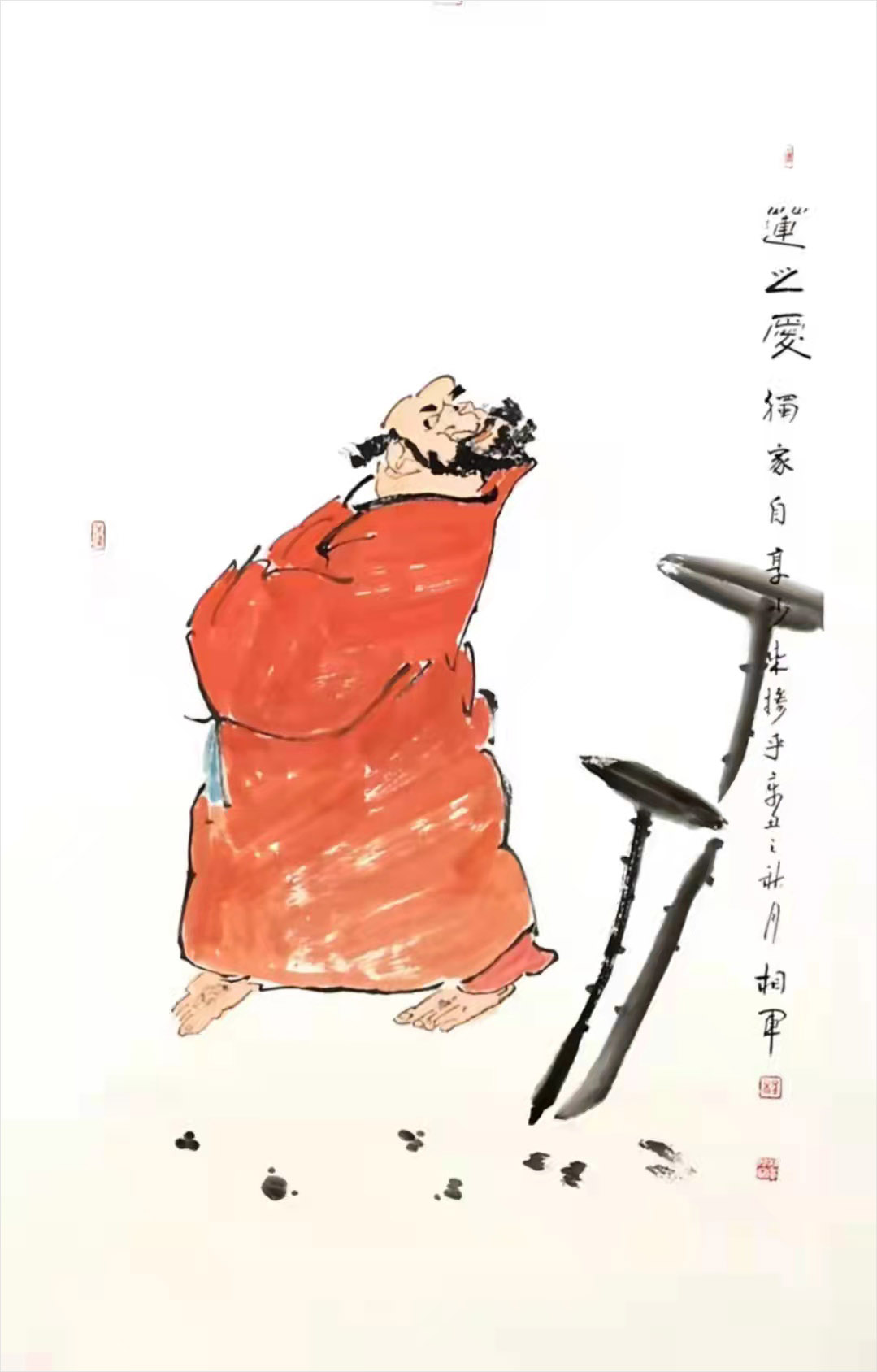 2013年禅画《坐等福来》被外交部作为国礼赠送马来西亚大使馆。