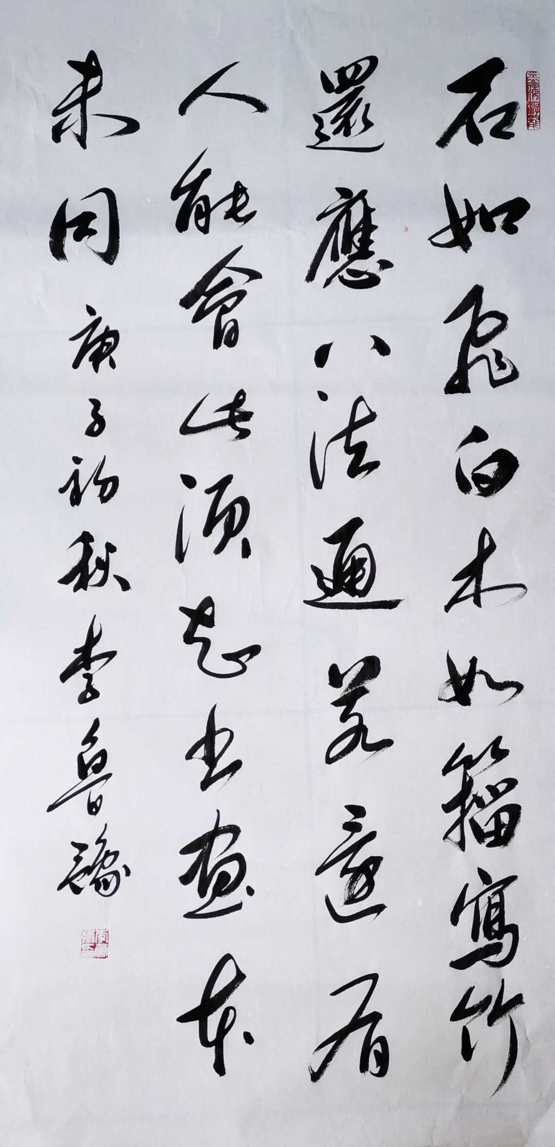 李鲁豫,字静雪,号天山行人,中国书法家协会会员,第五届、第六届中国书法家协会鉴定维权委员会委员。新疆书法家协会会员,新疆建设兵团书法家协会会员,广西书法协会会员,石河子市书法家协会会员。曾(12年)历任新疆建设兵团书法家协会秘书长、副主席;石河子市书法家协会秘书长、副主席。西域印社社员。书法作品入展2008年北京奥运“中国千名书家精品走进奥运场馆”作品展。并被国家体育馆收藏。作品在全国纪念毛泽东诞辰一百一十周年东方红杯大赛中获三等奖。作品被韶山博物馆收藏。作品六条屏毛主席诗词沁园春.雪被中国沁园春.雪书法博物馆特邀作品并收藏。作品在31个省第六届老年书画大展获一等奖,在山西太原展出,第二届书画精英展二等奖,在井冈山展出,第五届全国老年书画展获二等奖,在石家庄展出。连续两年作品入编中国书法家协会出版的2006.2007《中国书法年鉴》一书。三次入展中韩书法作品展。入展及入编书籍作品有,《炎黄人新世纪书画艺术鉴赏印象》《纪念毛泽东一百一十周年东方红杯中国书画大赛获奖作品集》《祖国万岁》《2004中国职工书法绘画作品精品集》《天山书坛》《绿洲书苑》《石河子老军垦书画集》《石河子美术书法作品集》《情韵全国十六届书市书画展作品集》《新疆维吾尔自治区社会主义新农村建设书法展览作品集》《韩.中国际书艺展》《中国新疆.韩国书法交流作品集》《第三届中国.韩国书法交流展作品集》《往识集.三百位中书协会员诗歌作品集》《新疆经典书法卷》《鹤鸣青山.书画集》《香港回归一周年全国书画作品集》《冰雪情海内外书画名家邀请展精品集》《全国百名将军及书画名家作品集》《2008千名书家走进奥运场馆书画大画册》《中国书画艺术人才精品集》。《第二届全国书画精英展作品集》,曾三十多次参加全国、省、市的各类书法展,曾获数次金奖,一等奖,二等奖,三等奖,优秀奖等,并在“中国文艺”、“书法艺术报”、“新疆日报”、“兵团文艺”、“石河子文艺”一《燕赵书画》等报刊杂志刊登。连续两次被中国书法家协会评为”书法家进万家活动”全国先进个人。