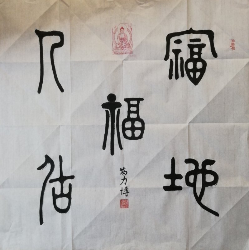 自幼爱好书法,初学颜真卿楷书,后上溯汉魏(石门颂)(张猛龙)等北魏元氏墓志,篆书李斯、邓石如、吴昌硕等,受前辈大师影响,潜心研习铁线篆书及甲骨文、金文、瓦当文、石鼓文、大篆、小篆等。