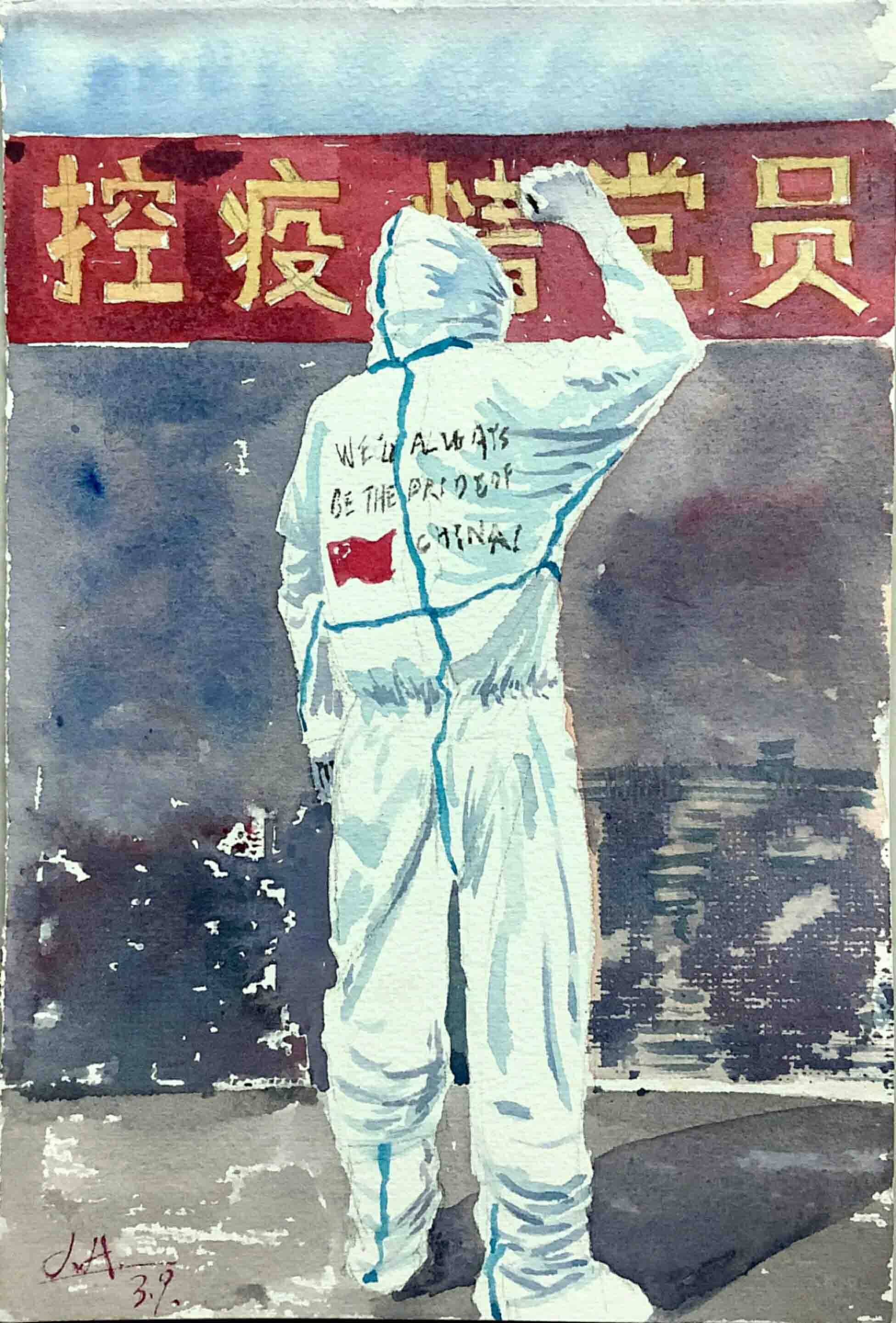 2020年美术作品《逆行者》参加线上抗击疫情书法绘画作品大展,并获得参展证书(中国写生会主办,并和诺贝尔文学奖获得者莫言先生同期展出);