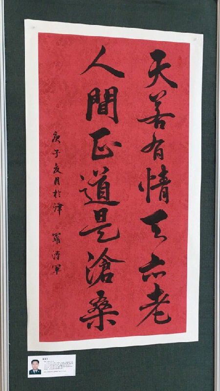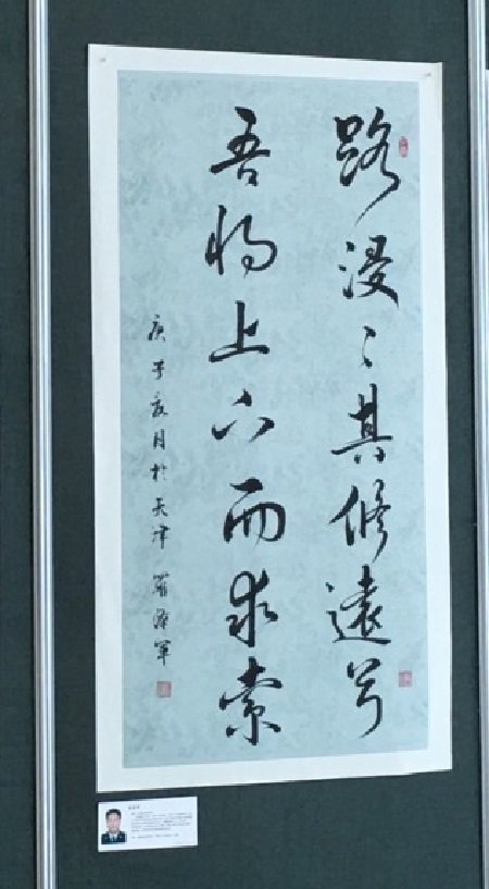罗汉军,1970年生,湖北天门人。毕业于中国装甲学院。现是天津市公安局河东分局春华派出所一名人民警察、中国国礼艺术家、全国人大全国政协十三届三次会议官方推荐德艺双馨艺术家、2019年被评为魅力中国闪耀世界中国文化国际传播年度人物、2020年8月在北京星光大道举办的采风20周年庆典暨电视年度人物被评为德艺双馨的艺术家。自幼酷爱书法,在工作之余,一直笔耕不辍,为寻觅书法艺术之真谛,曾向天津市书法协会原副主席曹柏崑,天津书画家朱兆煜请教书法艺术。利用业余时间临王羲之、赵孟頫、启功等大师之书法作品。结合工作实际十年如一日坚韧、执着、百折不挠地探索属于自己的艺术语言,用独特的艺术语言传达着对生命的独特领悟、观点和气质,让内心与世界进行对话。用自己创新出来的书法语言为人民解惑答疑、排忧解难。天道酬勤,厚德载物,罗汉军的书法作品登上了世界邮票并全球发行,并在北京山水丹青国际文化有限公司举办为期五天的书法作品展,受到了大家的好评。艺术的道路永无止境,路漫漫其修远兮,吾将上下而求索,罗汉军将不忘初心、牢记使命、砥砺奋进、为铸建人类命运共同体伟大工程添砖加瓦,弘道坚毅而行。
