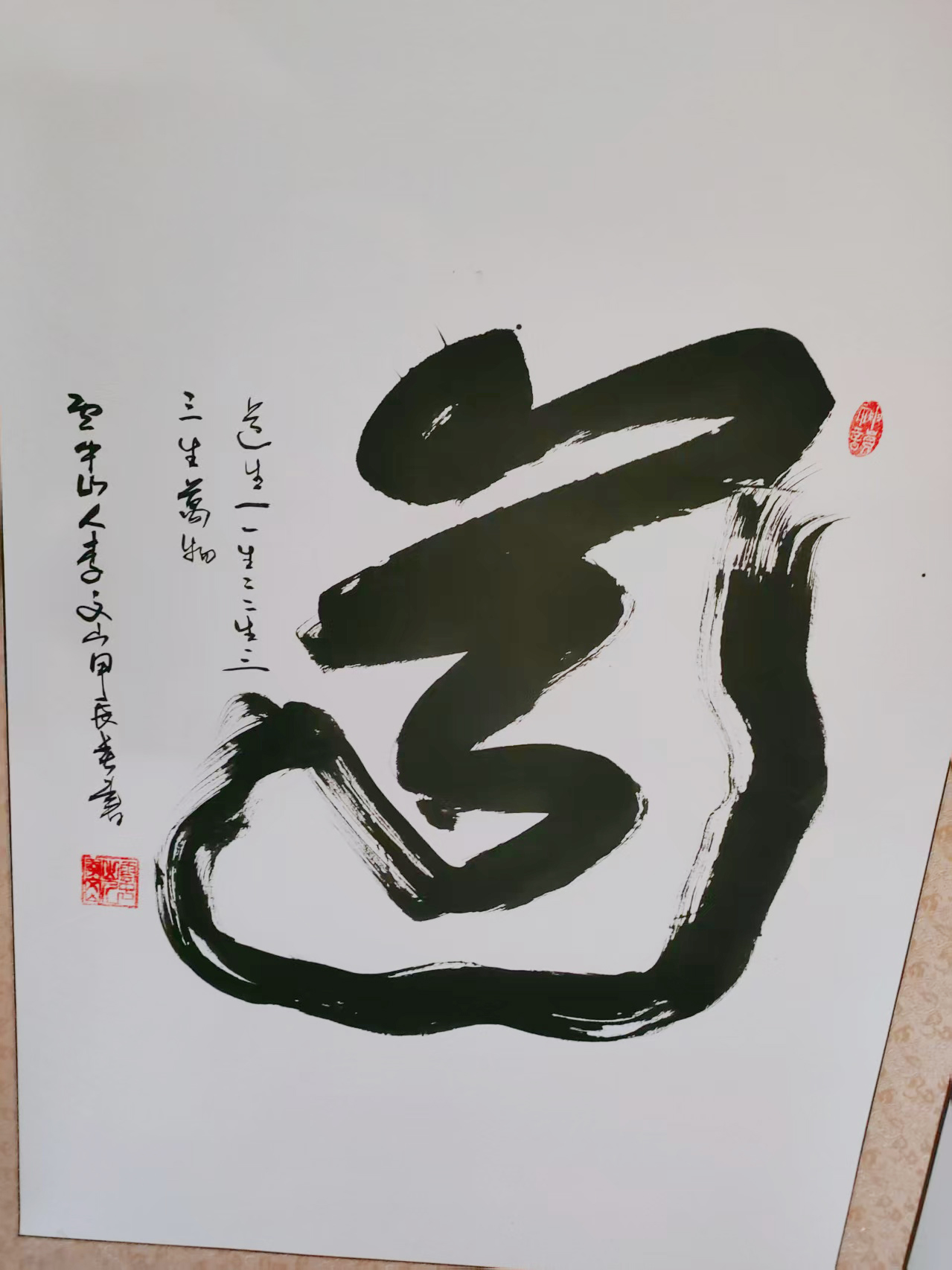 1978年,李文山先生投身教育事业,担任初中教师十三年。教学之余,他常为教学刻写蜡板,借此契机潜心习练仿宋体,日复一日,对仿宋体的笔画、结构、韵律烂熟于心。一次偶然的尝试中,他将仿宋体的规整严谨与毛笔的灵动气韵相结合,打破传统字体边界,成功将仿宋体笔法迁移至毛笔书写,创造出一种兼具印刷字体规范与书法艺术韵味的新字体,至今尚未命名,成为其书法艺术的鲜明标识。